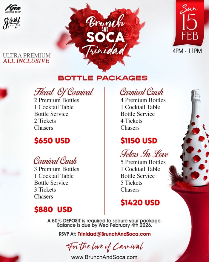 Table/Bottle Packages Are Available. RSVP At: Trinidad@BrunchAndSoca.com