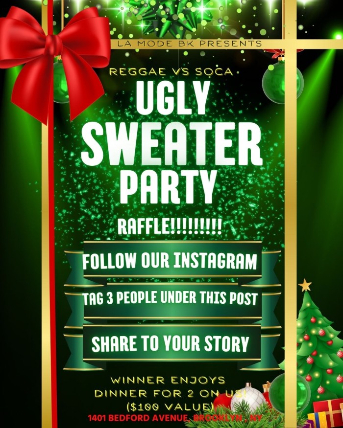 #HOLIDAYPARTY #PARTY #UGLYSWEATER #UGLYSWEATERPARTY #AFTERWORKPARTY #SOCAVSREGGAE #SOCA #REGGAE #FOOD #DRINKS #SHOTS